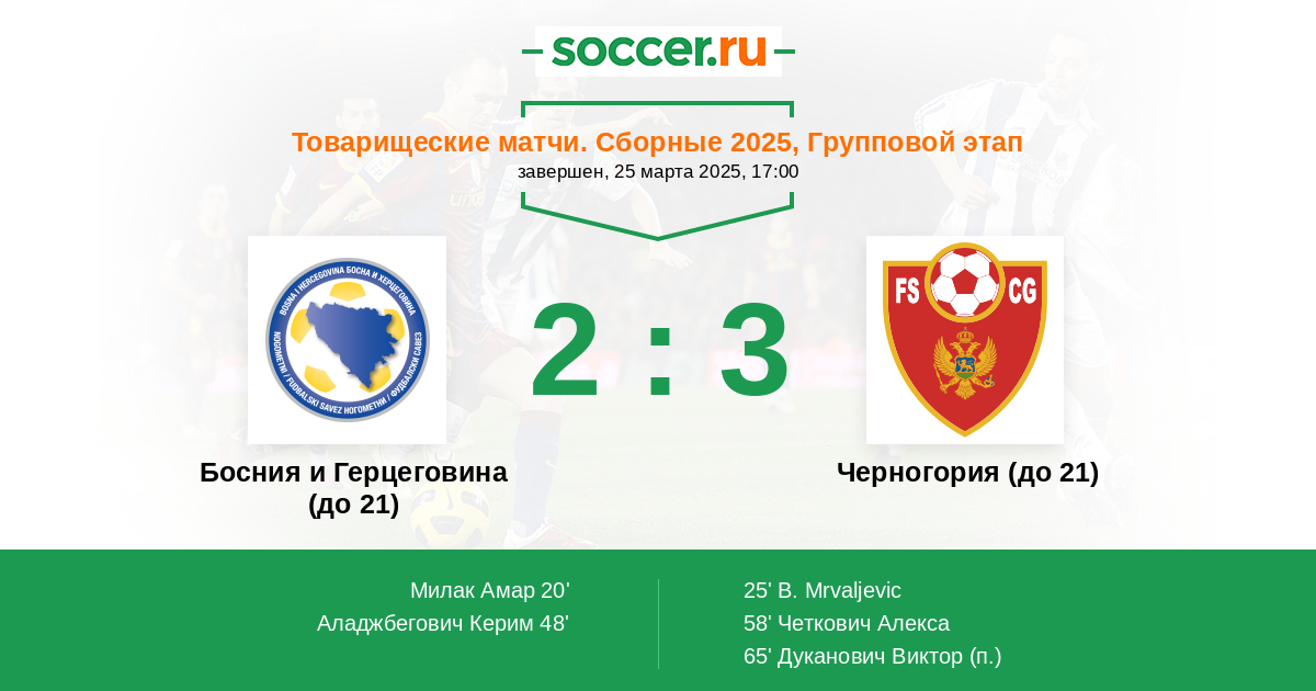 Протокол матча Босния и Герцеговина (до 21) против Черногория (до 21)