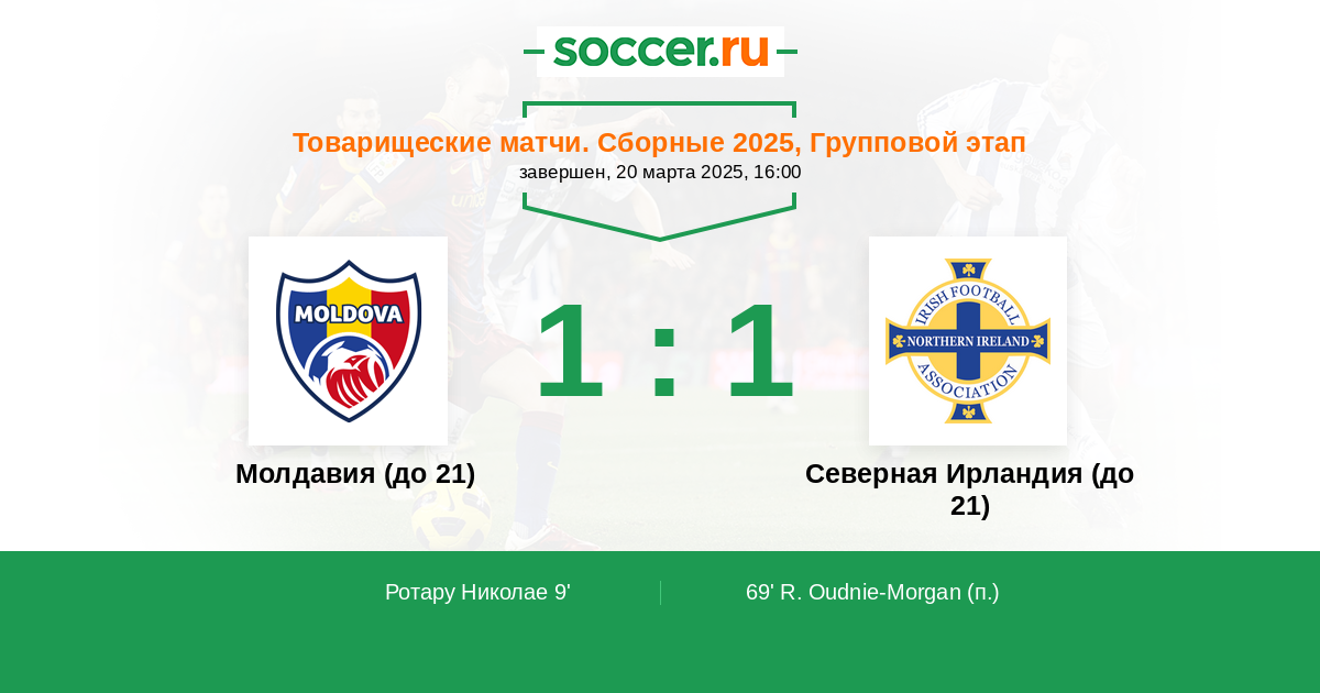 Протокол матча Молдавия (до 21) против Северная Ирландия (до 21)