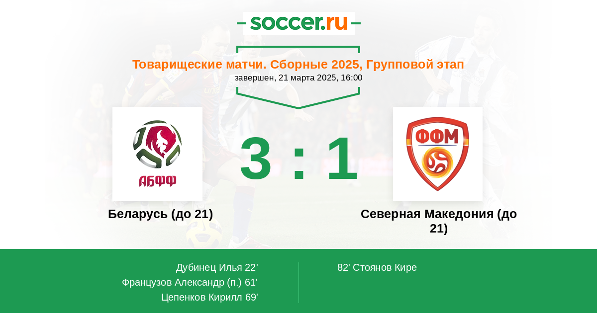 Протокол матча Беларусь (до 21) против Северная Македония (до 21)