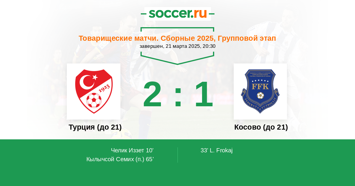 Протокол матча Турция (до 21) против Косово (до 21)