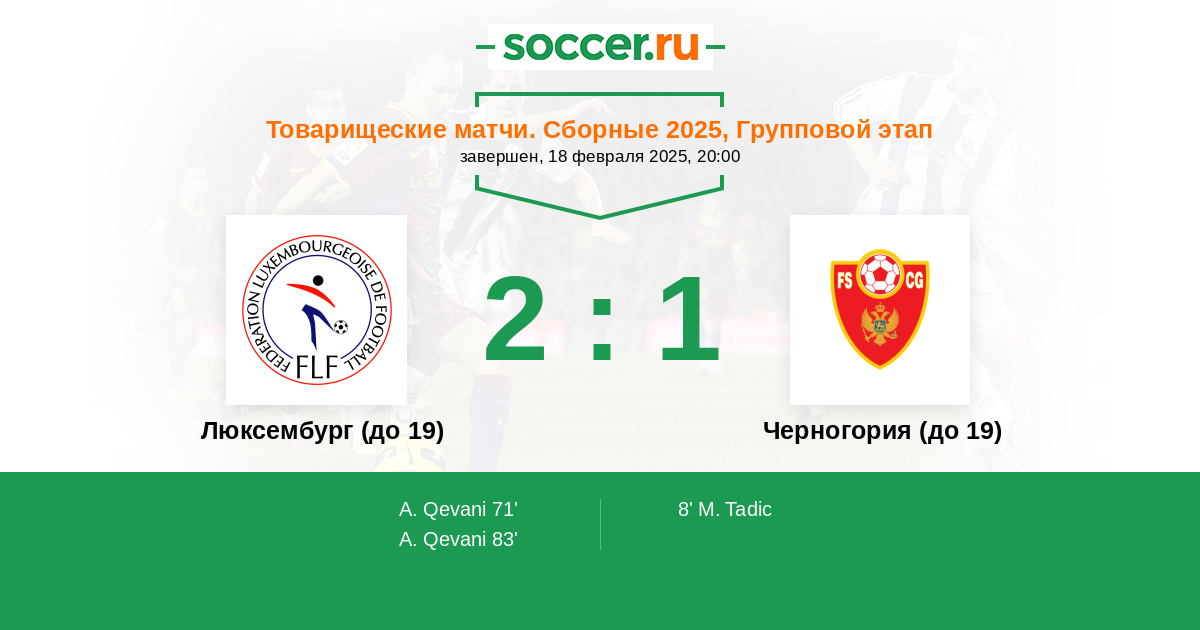 Протокол матча Люксембург (до 19) против Черногория (до 19)