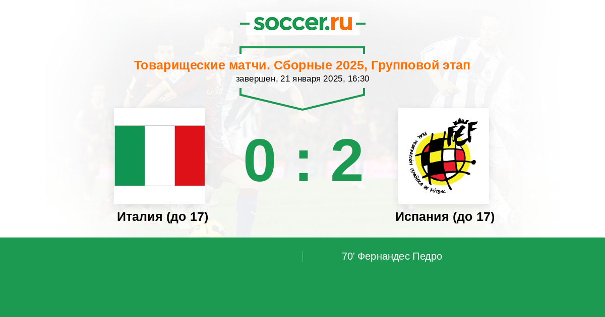 Протокол матча Италия (до 17) против Испания (до 17)