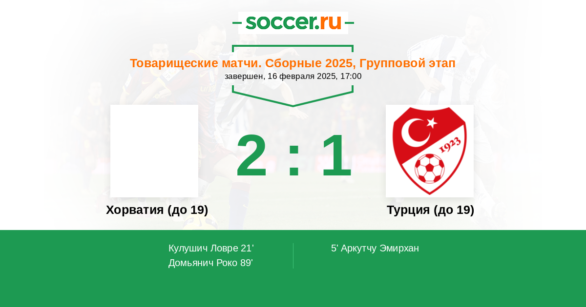 Протокол матча Хорватия (до 19) против Турция (до 19)