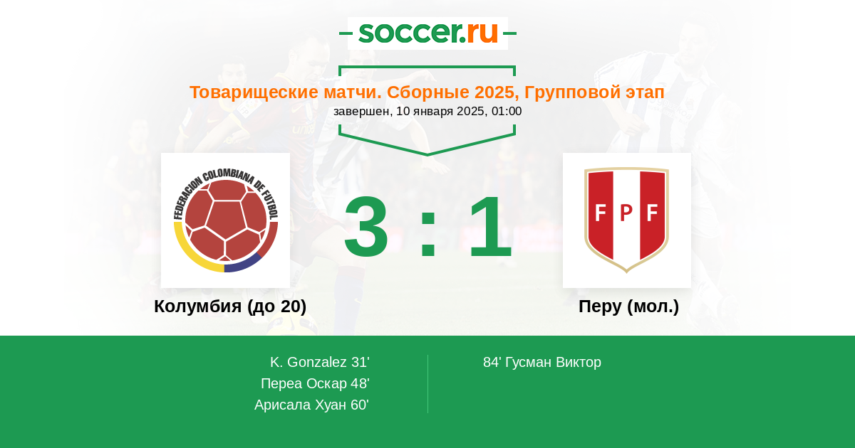 Протокол матча Колумбия (до 20) против Перу (мол.)