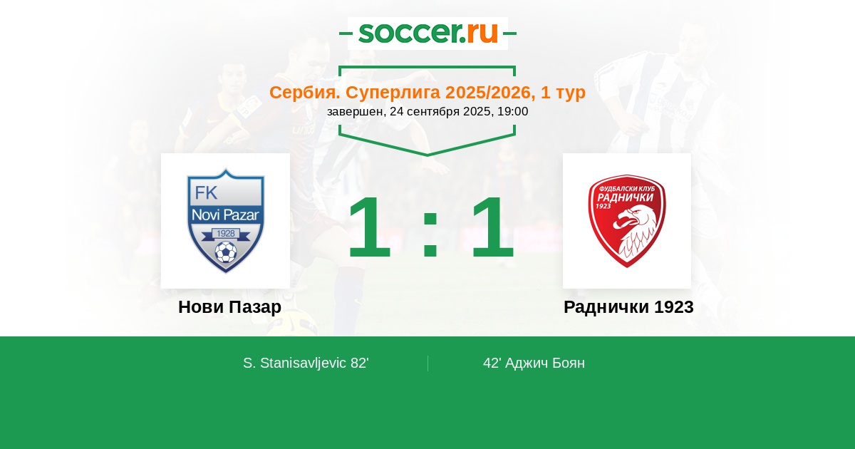 82' (1:1) Станисавлевич Стефан (18) (Милетич Неманья (3))