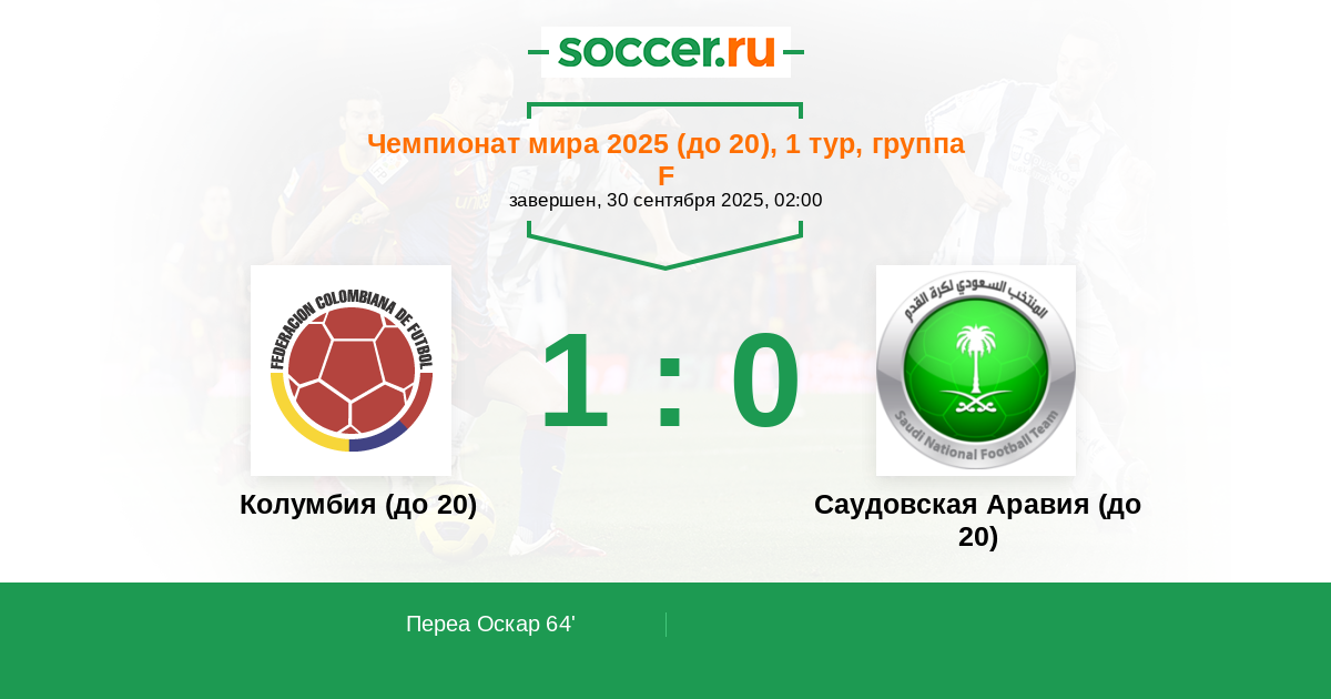 Протокол матча Колумбия (до 20) против Саудовская Аравия (до 20)