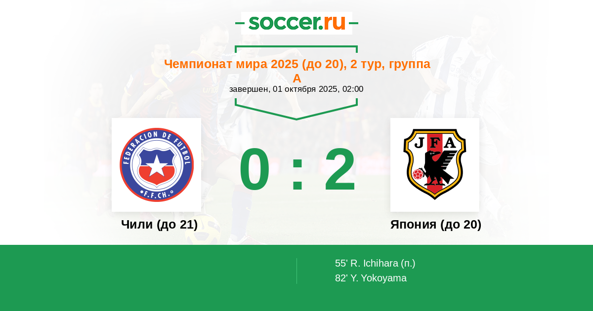 Протокол матча Чили (до 21) против Япония (до 20)
