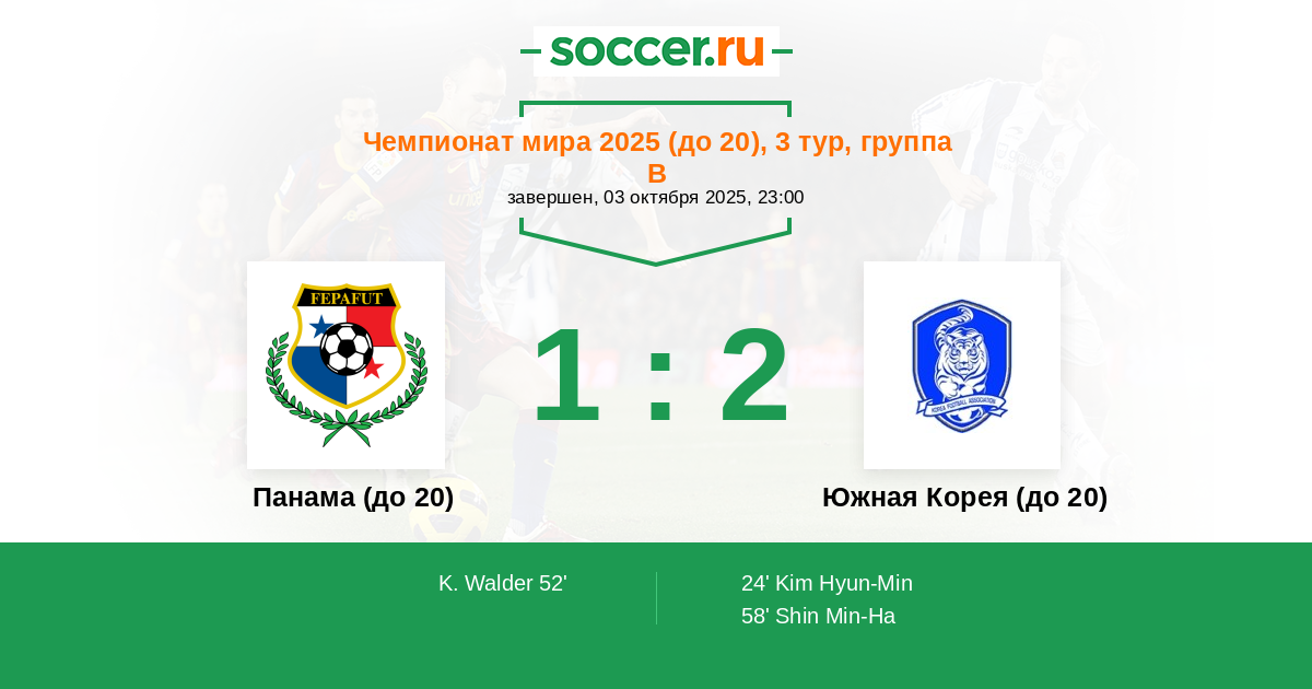 Протокол матча Панама (до 20) против Южная Корея (до 20)