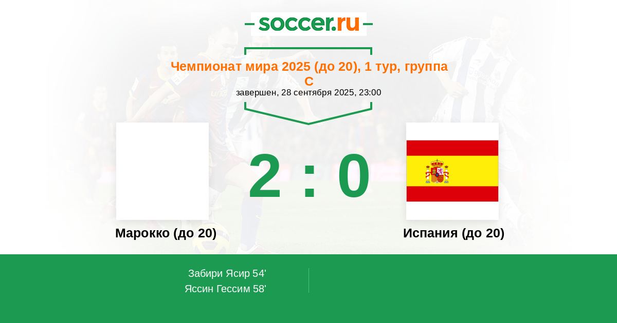 Протокол матча Марокко (до 20) против Испания (до 20)