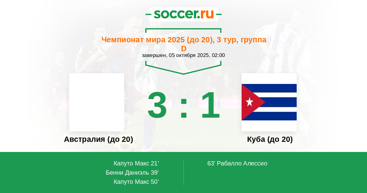 Протокол матча Австралия (до 20) против Куба (до 20)
