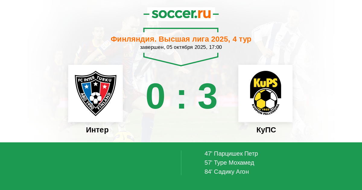 57' (0:2) Туре Мохамед (20) (Саволайнен Саку (6))