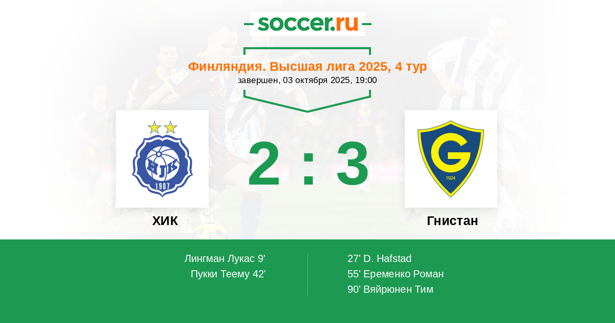 Протокол матча ХИК против Гнистан