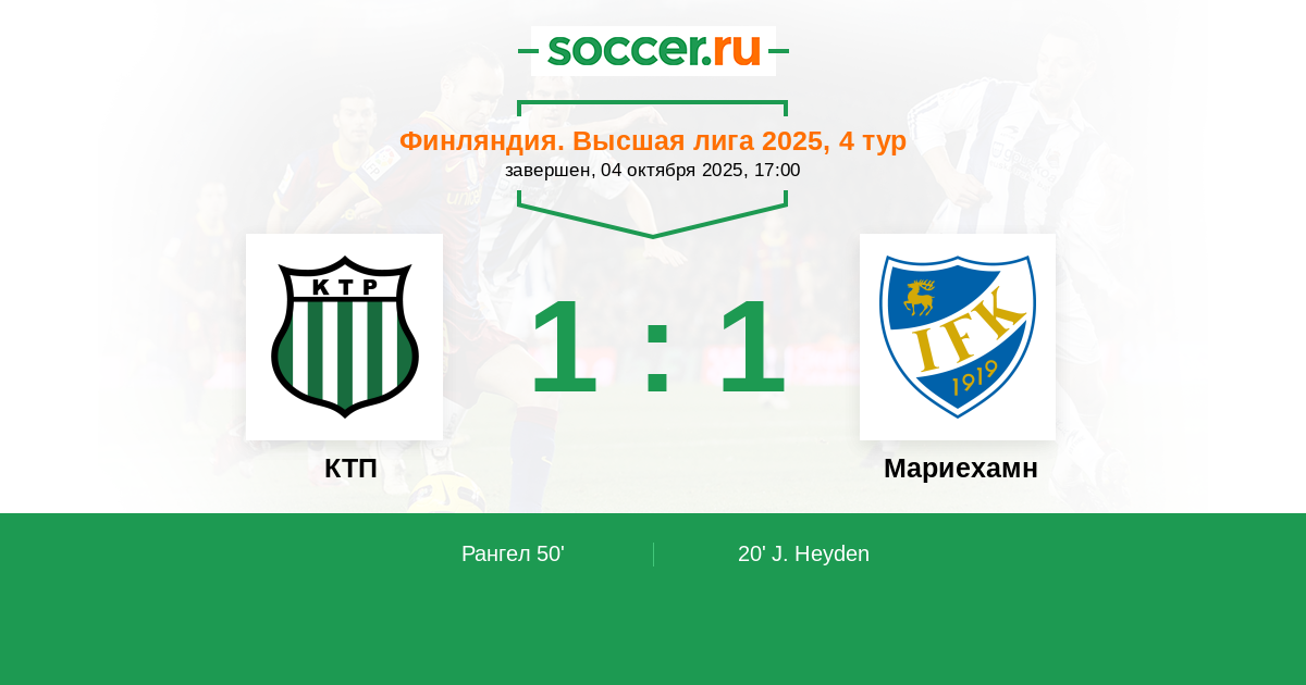 Протокол матча КТП против Мариехамн