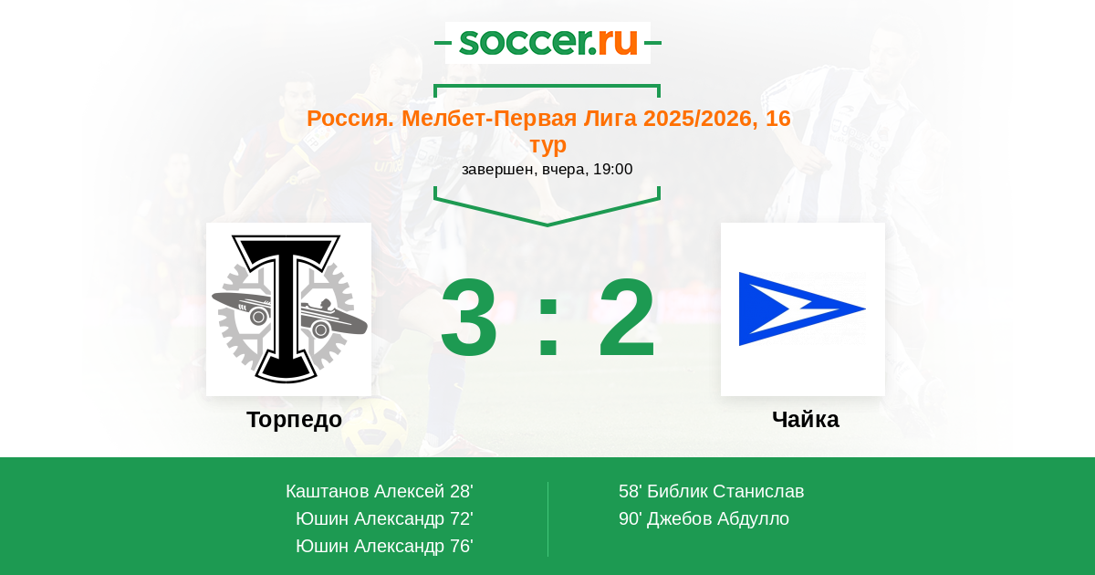 Протокол матча Торпедо против Чайка