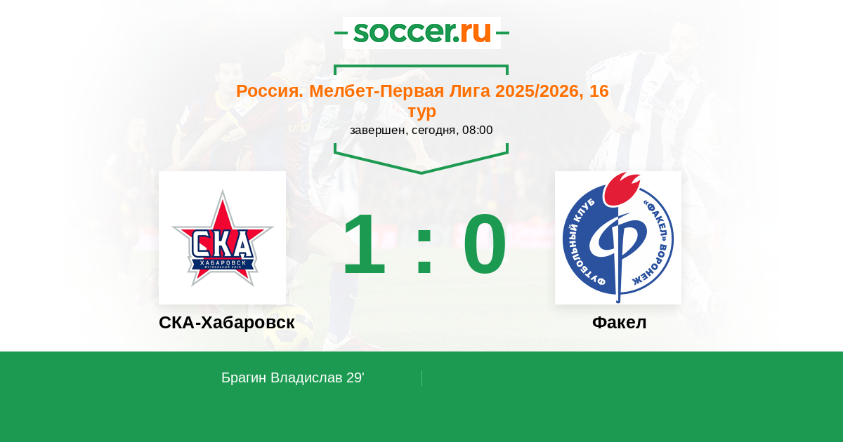 Протокол матча СКА-Хабаровск против Факел