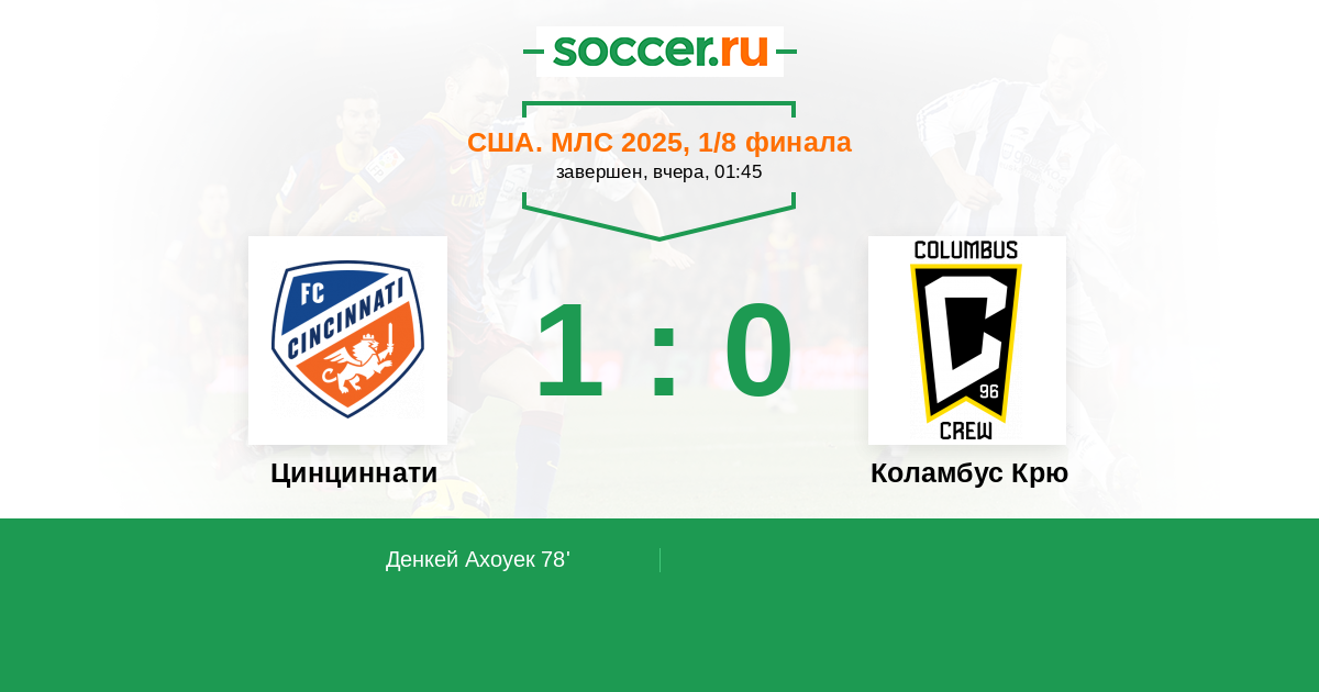 Протокол матча Цинциннати против Коламбус Крю