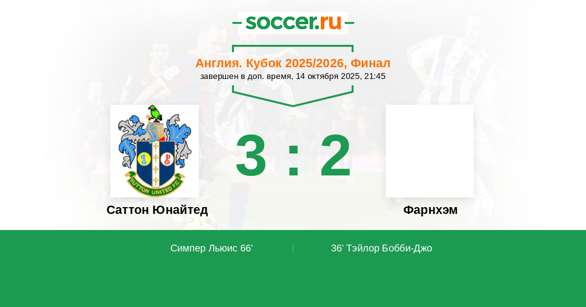 Протокол матча Саттон Юнайтед против Фарнхэм