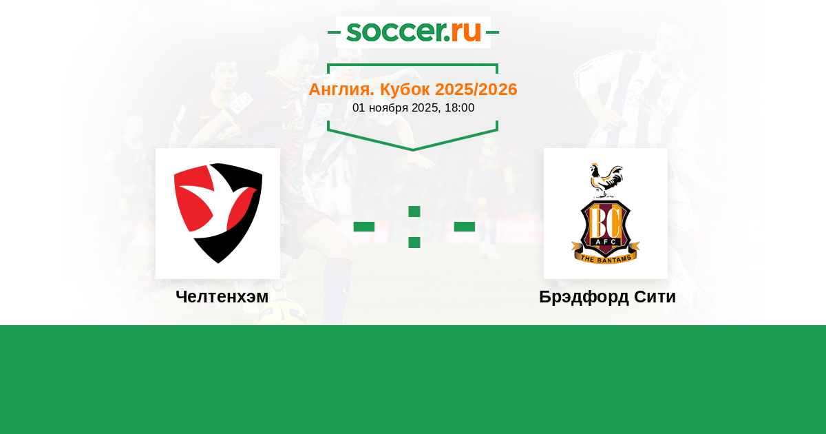 Протокол матча Челтенхэм против Брэдфорд Сити