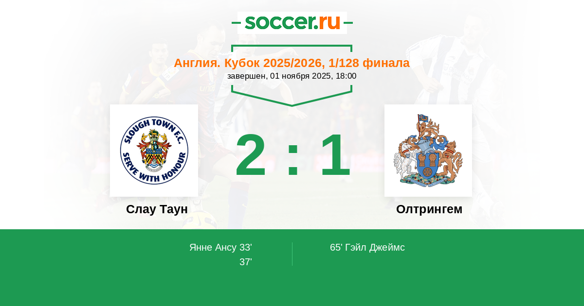 Протокол матча Слау Таун против Олтрингем