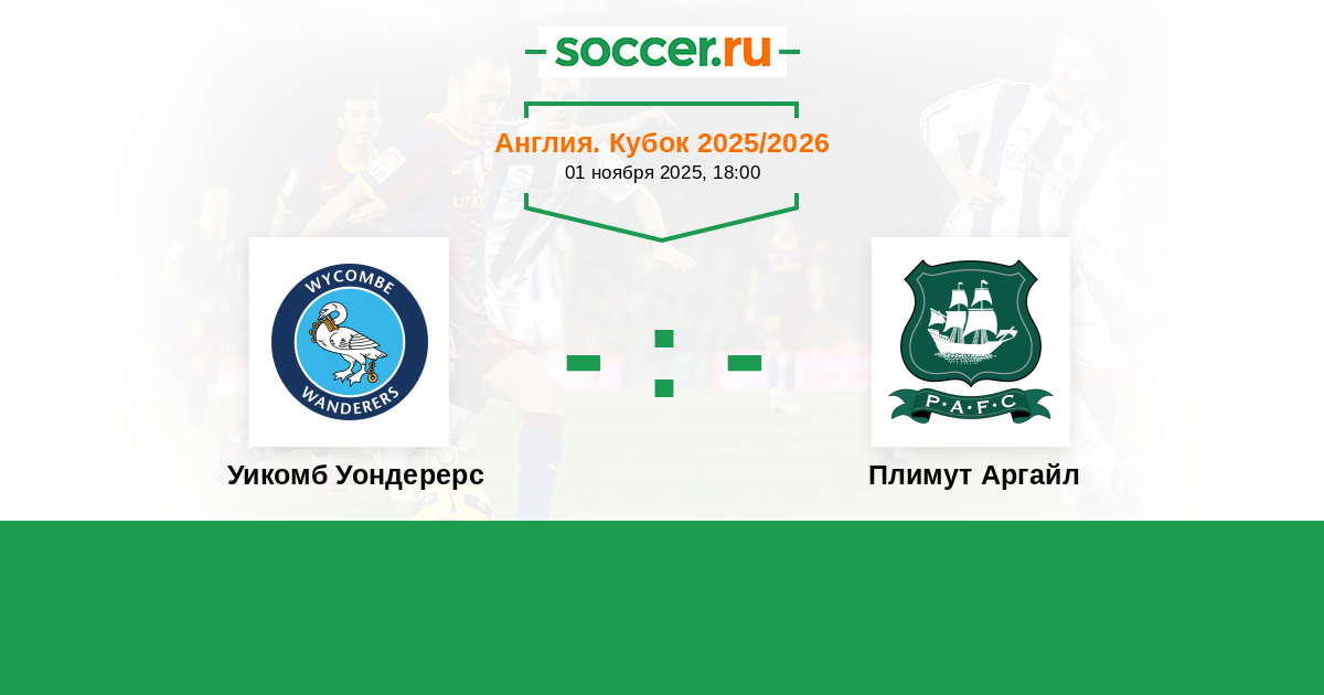 Протокол матча Уикомб Уондерерс против Плимут Аргайл