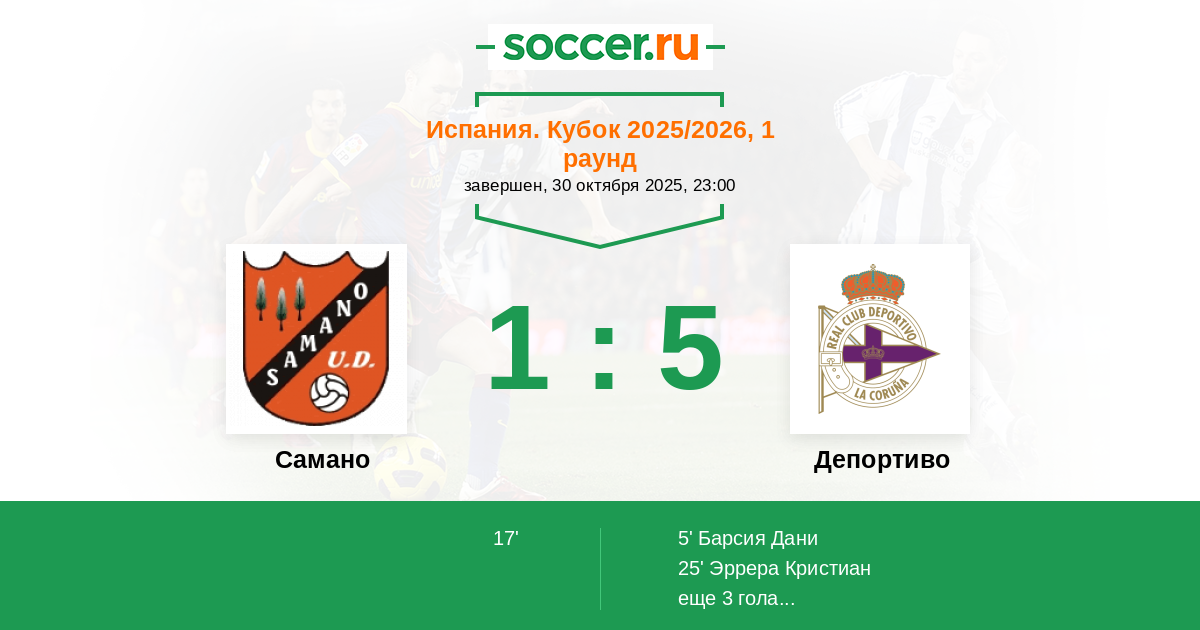 Протокол матча Самано против Депортиво