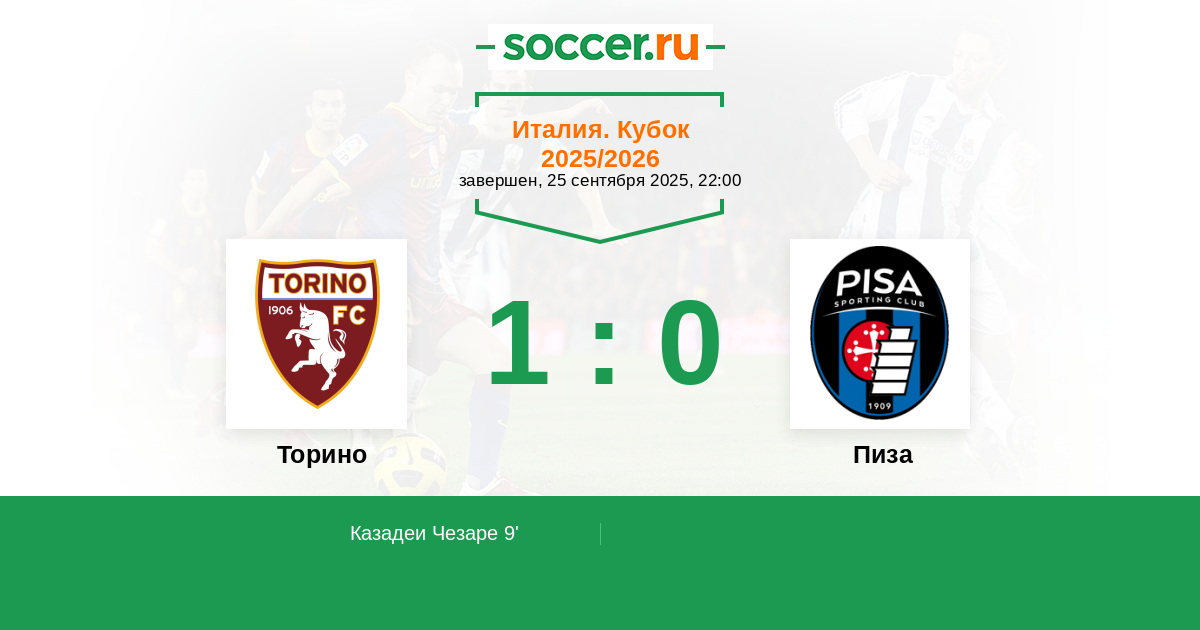 Протокол матча Торино против Пиза