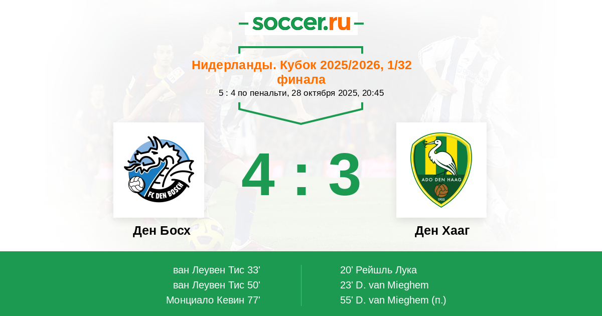 33' (1:2) ван Леувен Тис (10) (Силле Генрих (7))