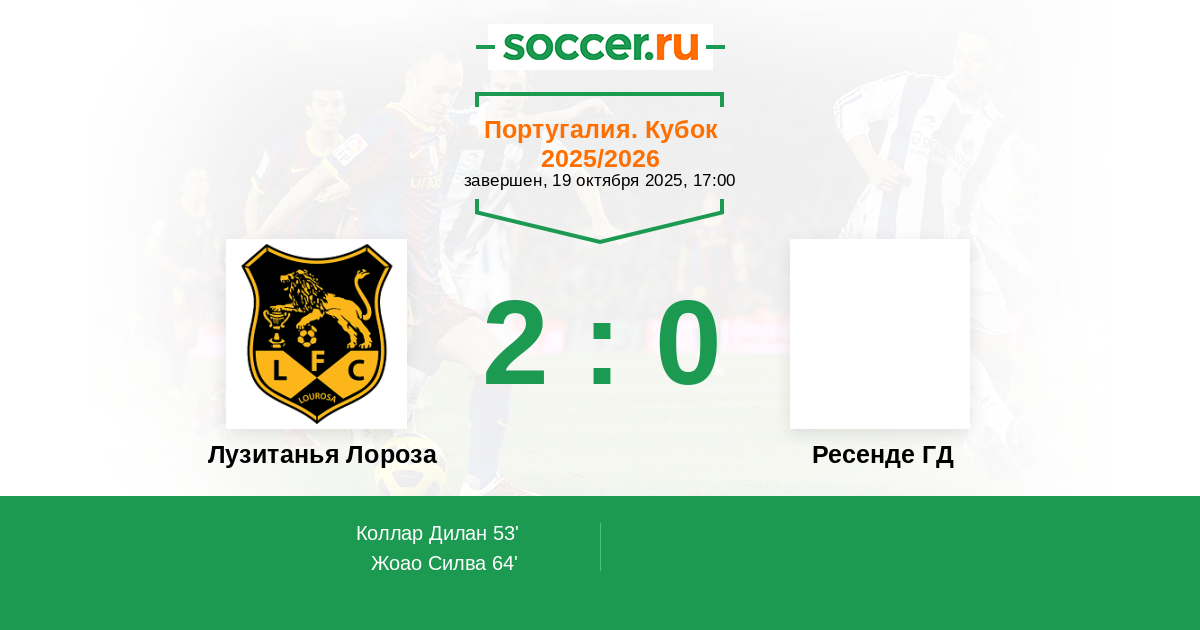 Протокол матча Лузитанья Лороза против Ресенде ГД