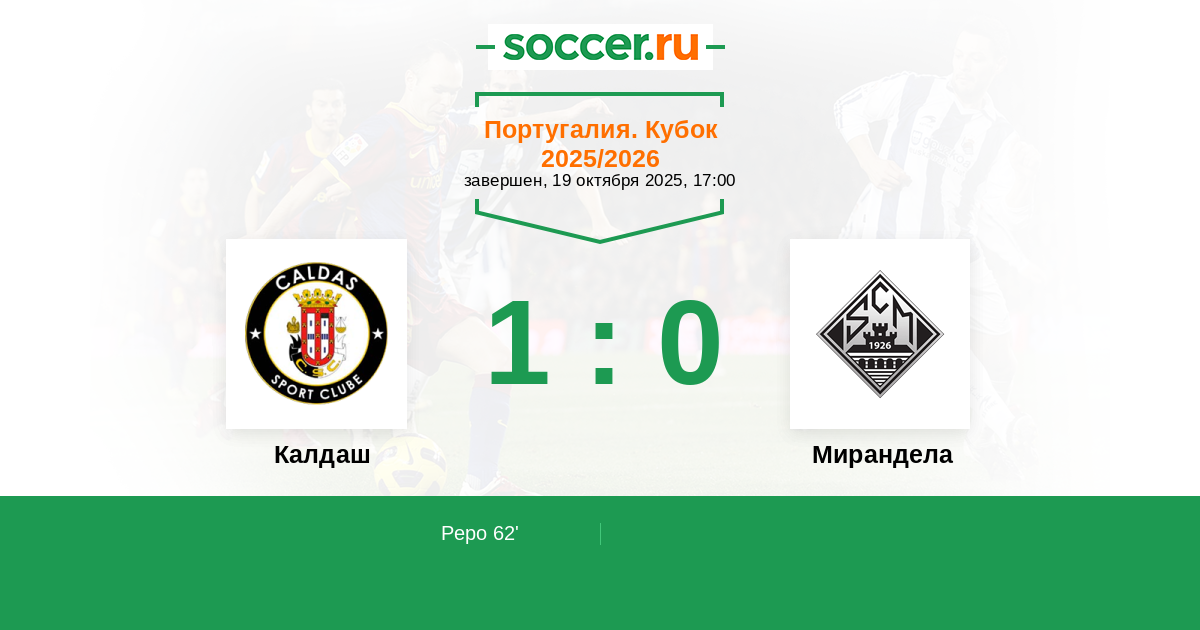Протокол матча Калдаш против Мирандела