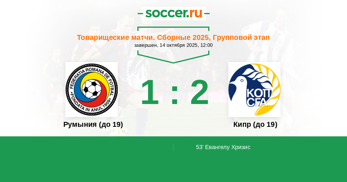 Протокол матча Румыния (до 19) против Кипр (до 19)