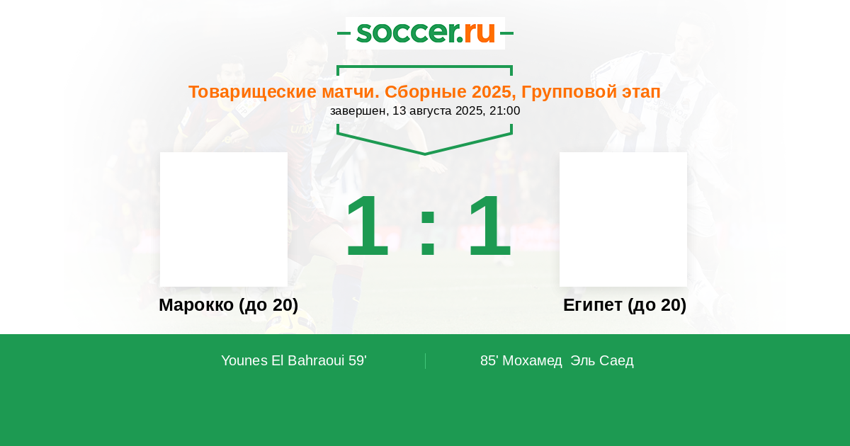 Протокол матча Марокко (до 20) против Египет (до 20)
