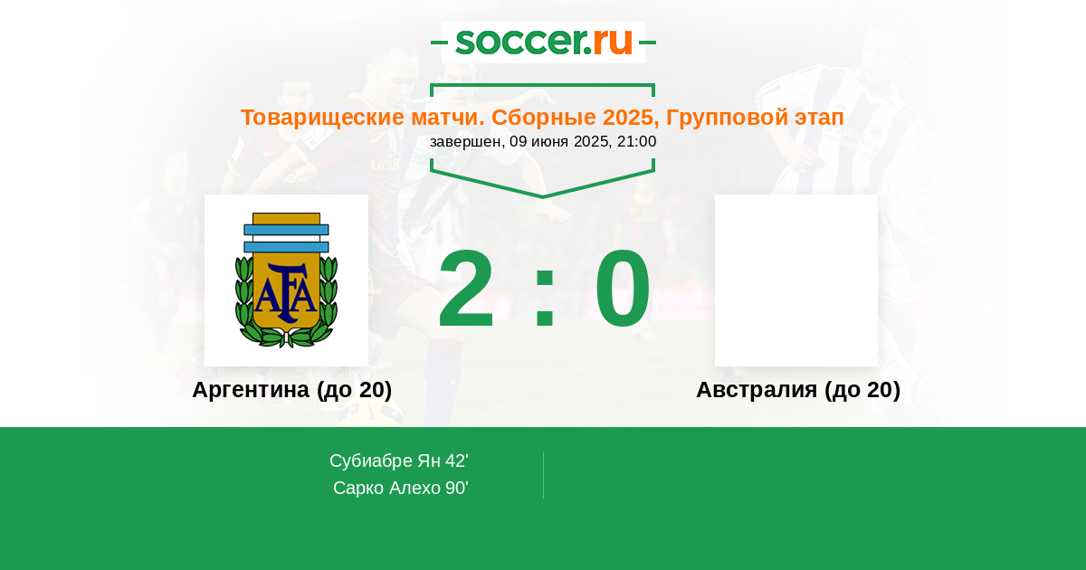Протокол матча Аргентина (до 20) против Австралия (до 20)
