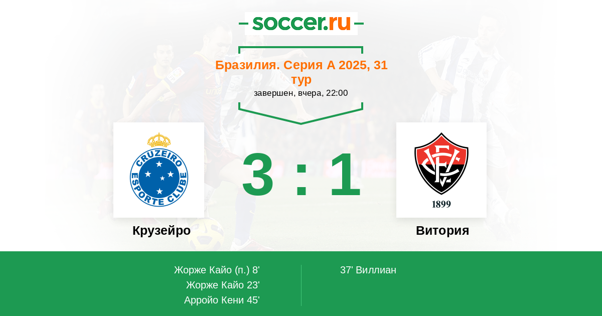 23' (2:0) Жорже Кайо (19) (Каики (6))