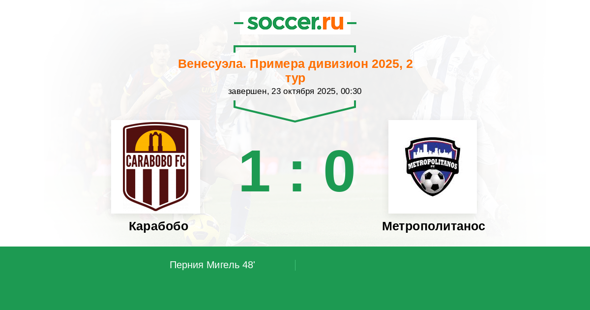 Протокол матча Карабобо против Метрополитанос