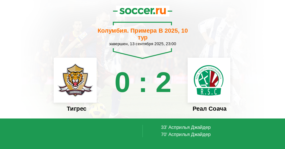 33' (0:1) Асприлья Джайдер (9)