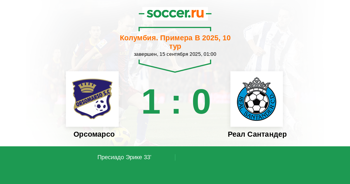 Протокол матча Орсомарсо против Реал Сантандер