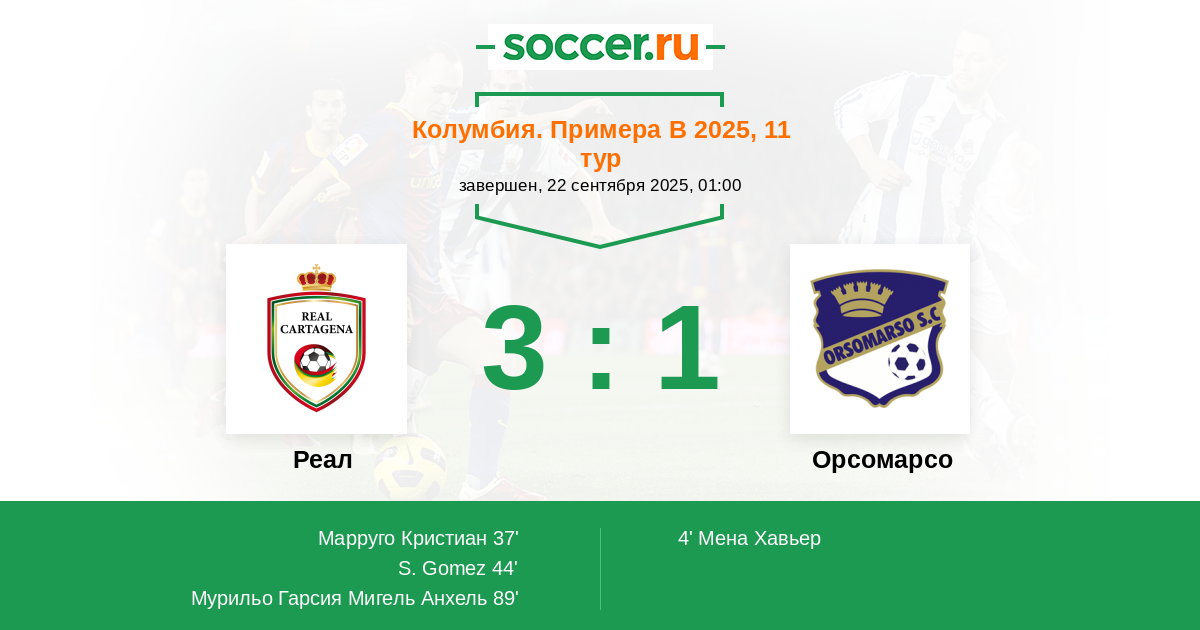 Протокол матча Реал против Орсомарсо
