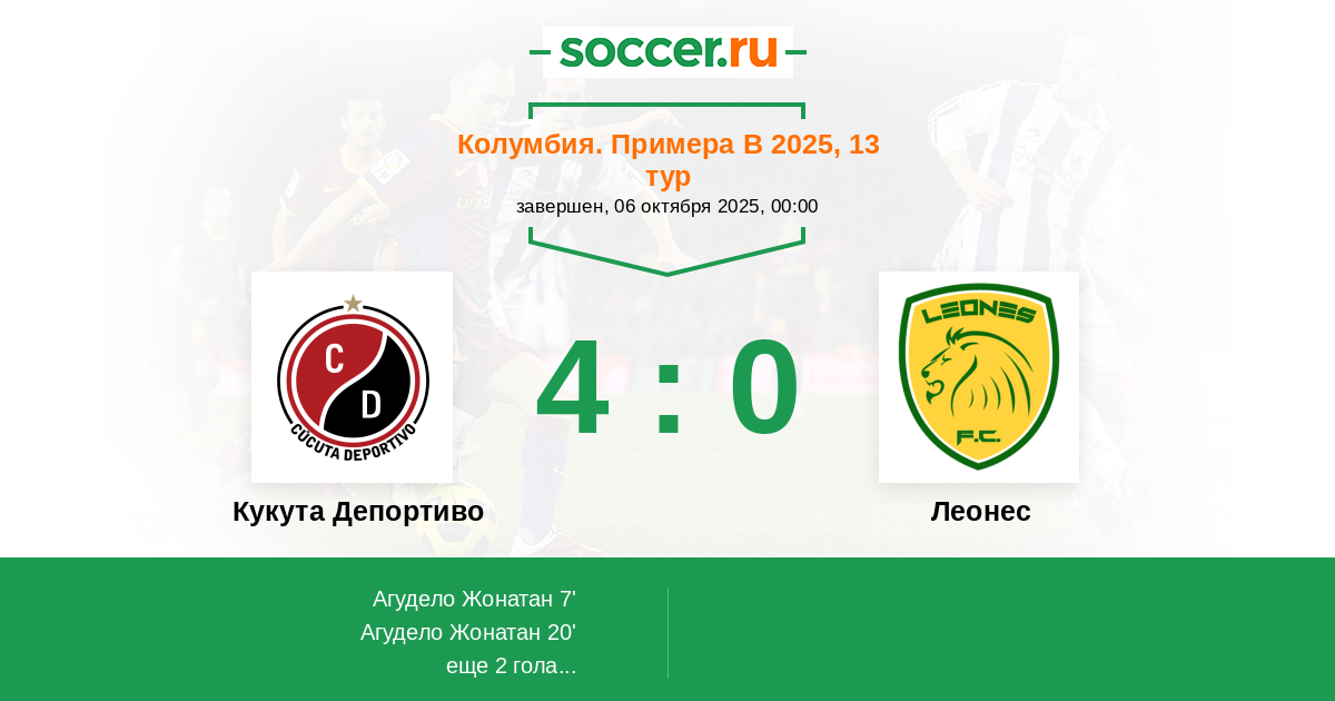 Протокол матча Кукута Депортиво против Леонес