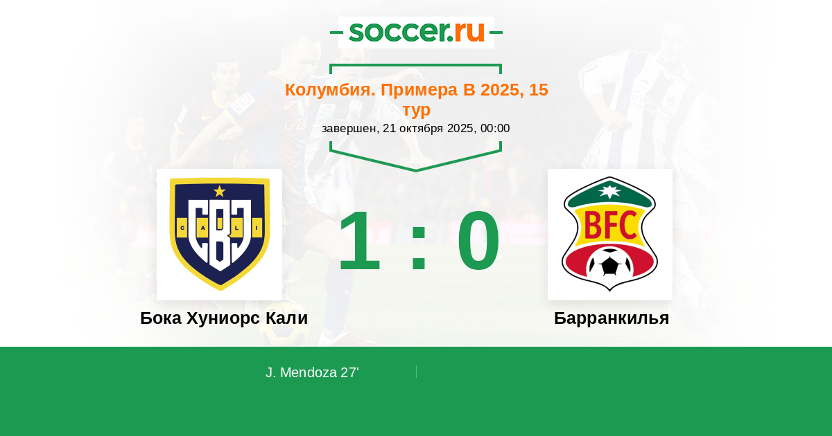 Протокол матча Бока Хуниорс Кали против Барранкилья