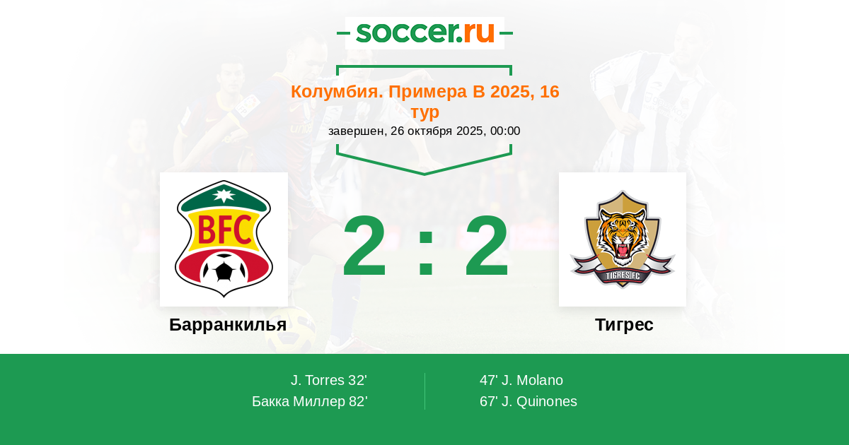 Протокол матча Барранкилья против Тигрес