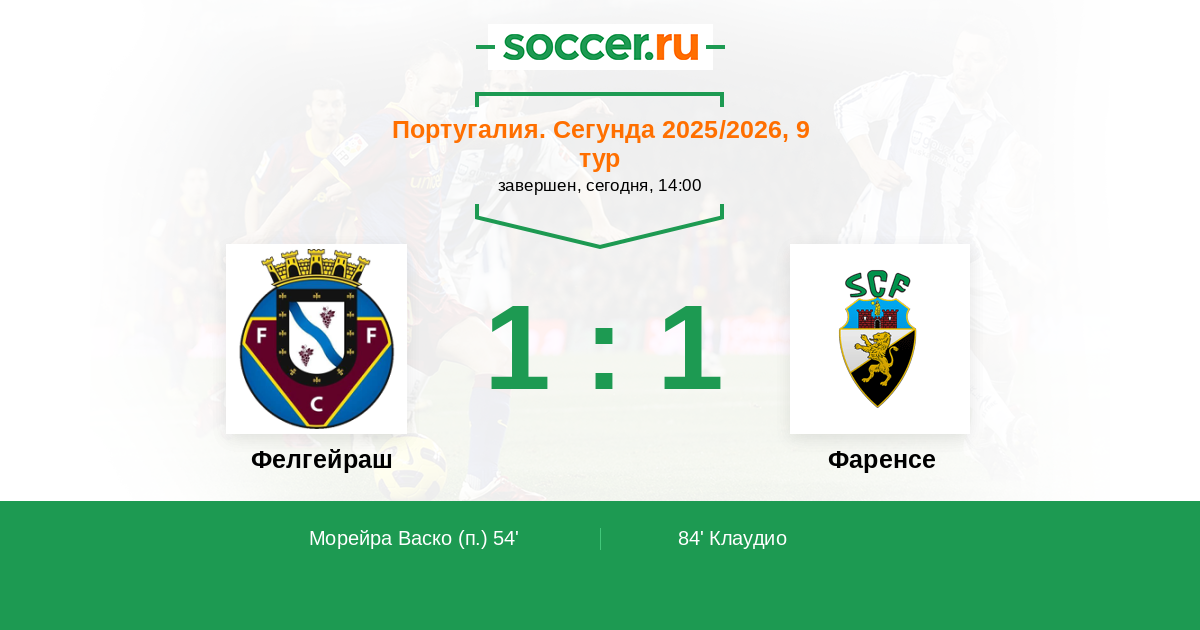 Протокол матча Фелгейраш против Фаренсе