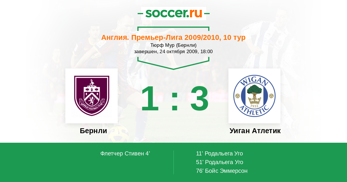 Протокол матча Бернли против Уиган Атлетик