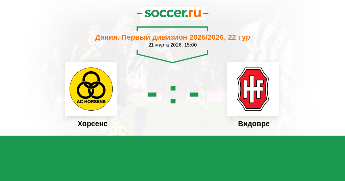Дания. Первый дивизион 27.02.2022 Хорсенс Логотип футбольный клуб Хорсенс 2:1 Логотип футбольный клуб Видовре Видовре