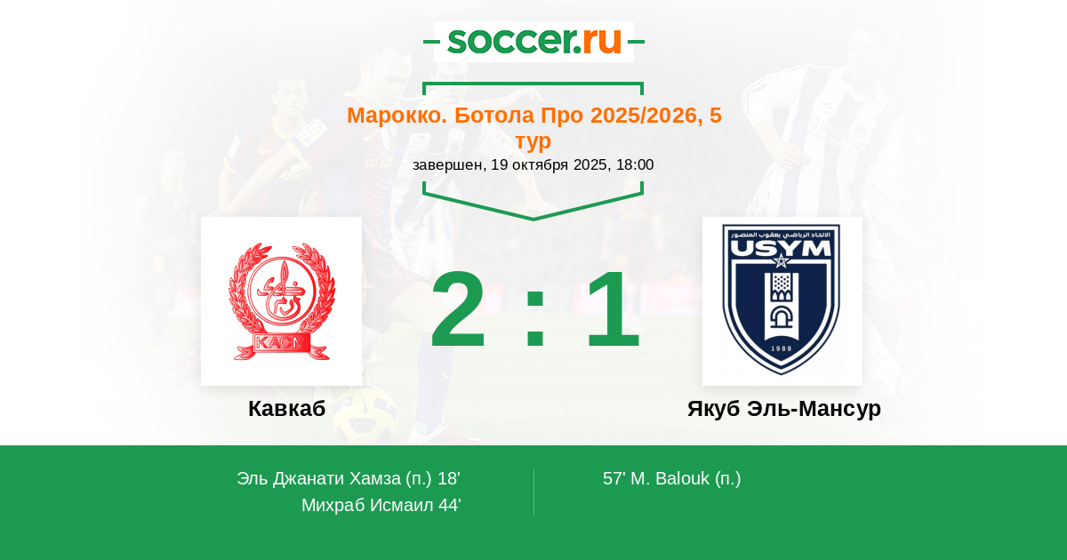 Протокол матча Кавкаб против Якуб Эль-Мансур