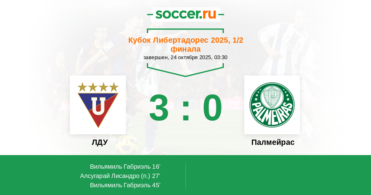 Протокол матча ЛДУ против Палмейрас