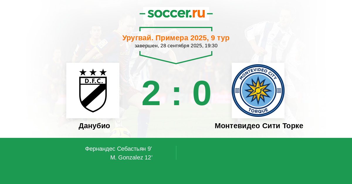 Протокол матча Данубио против Монтевидео Сити Торке