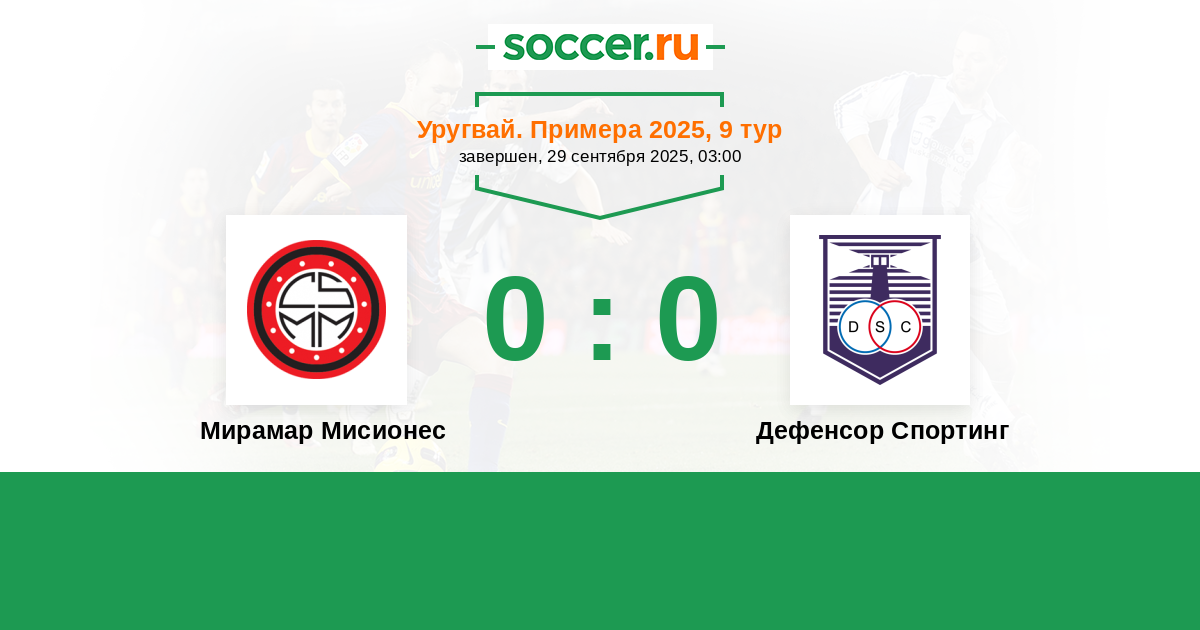 Протокол матча Мирамар Мисионес против Дефенсор Спортинг