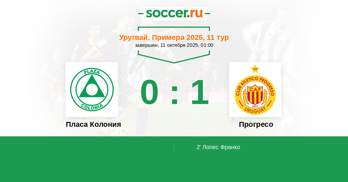 Протокол матча Пласа Колония против Прогресо