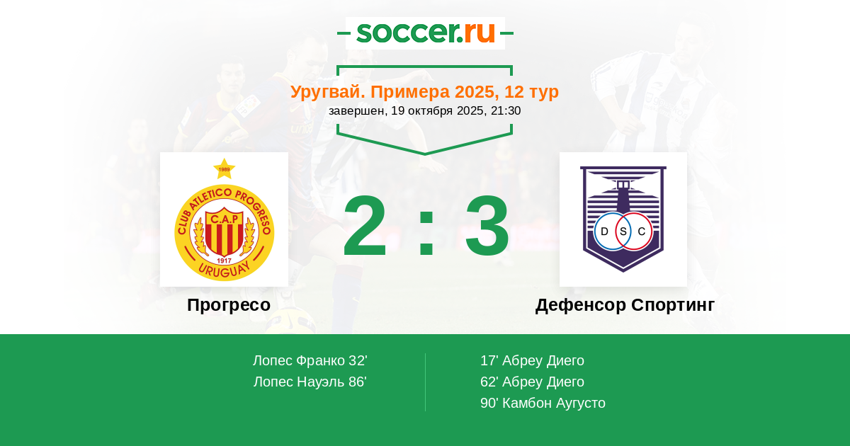 Протокол матча Прогресо против Дефенсор Спортинг