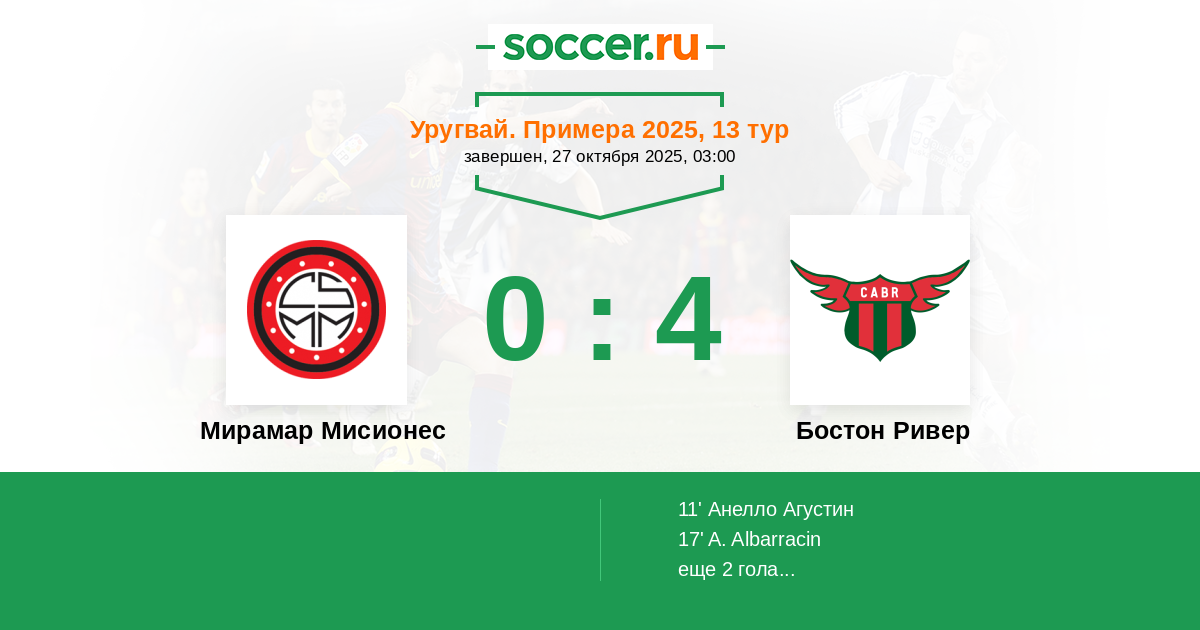 Протокол матча Мирамар Мисионес против Бостон Ривер